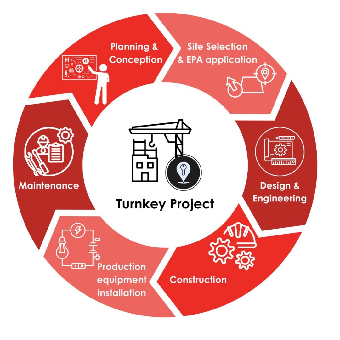 Single‑point responsibility from drawings and permissions to construction and handover.